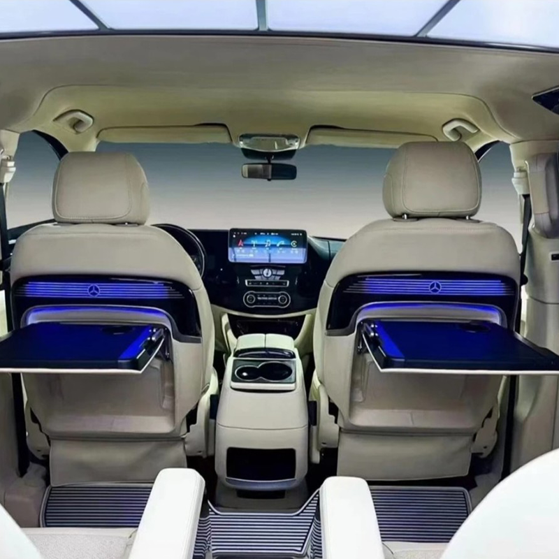 Idealna za poslovna putovanja, usluge prijevoza ili VIP prijevoz, ova modifikacija naslona pretvara vašu unutrašnjost Vito/V-klase u mobilni ured koji besprijekorno spaja funkcionalnost, stil i praktičnost.
